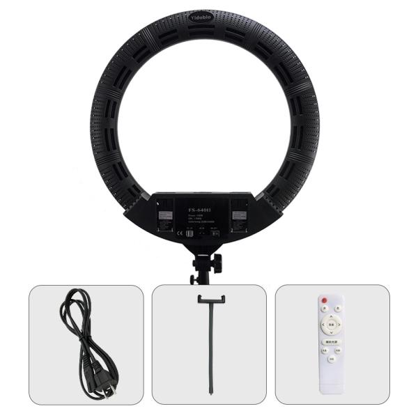 The Yidoblo FS-640II 22 Inch Ring Light is the ultimate camera lighting equipment that is perfect for a variety of applications. It is equipped with a power supply of AC100-240V/ DC14.5V and is certified with CE, RoHS. It has a color temperature range of 3200K-5600K and is made of aluminum alloy. It comes with a minimum order quantity of 10 pcs and a price range of USD59/pcs-53/pcs (10-100pcs). The packaging details are 65*12*58cm, 5kg/piece and the delivery time is estimated at 3-15 working days. Payment terms include T/T, Western Union, Paypal, and Credit card. Yidoblo FS-640II 22 Inch Ring Light has a supply ability of 1000pcs/month and comes with a carry bag (optional). One phone holder is given, there are three phone rack positions, making it a great choice for a variety of applications.